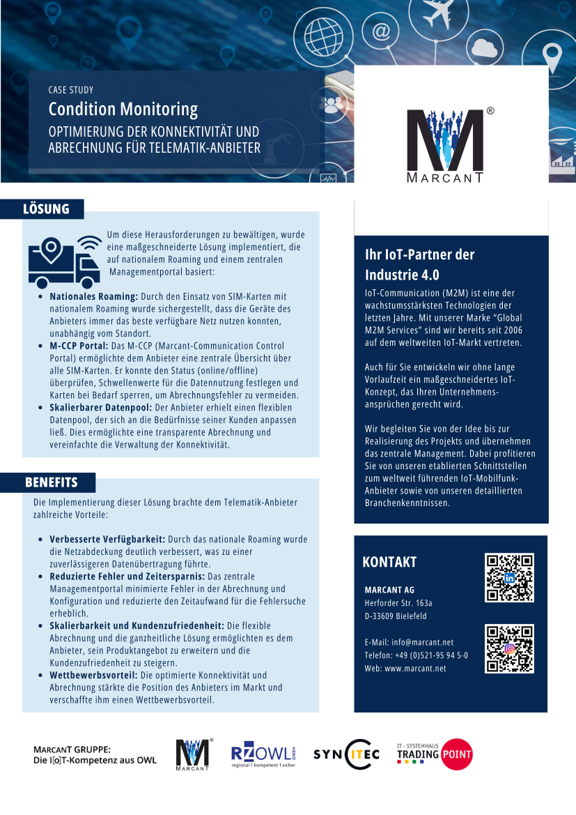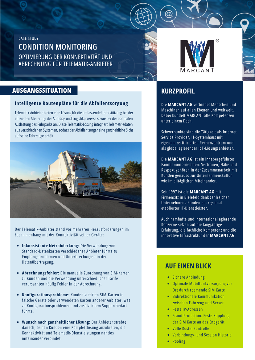 Die MARCANT AG optimierte die Konnektivität und Abrechnung-Problematik für diesen Kunden. Mehr Infos dazu finden Sie in unserem CaseStudy:
